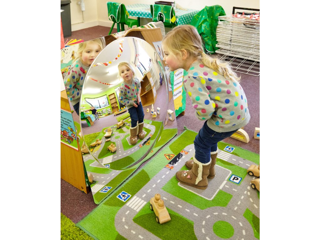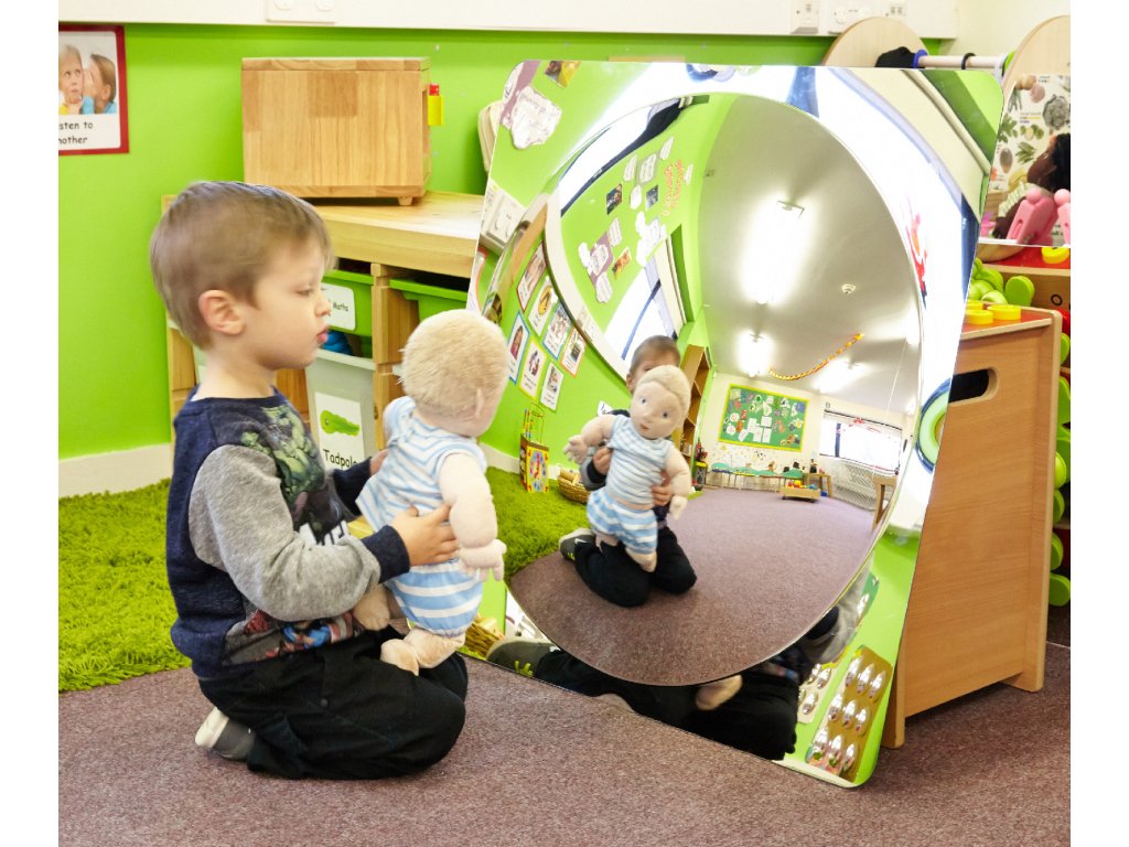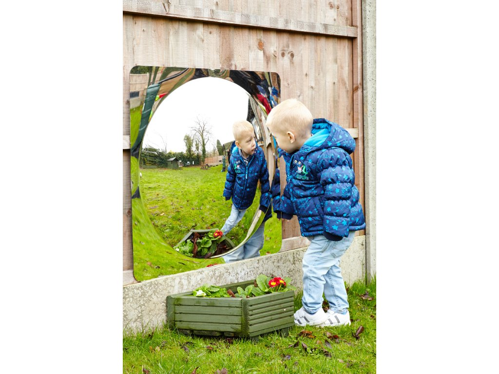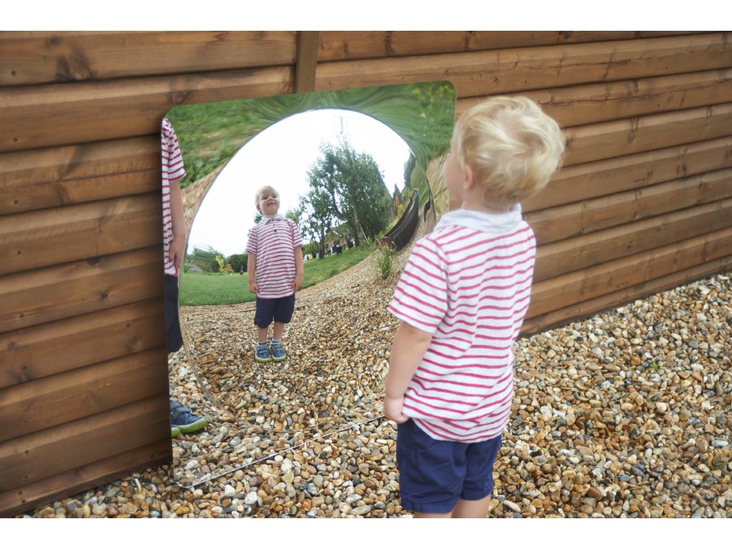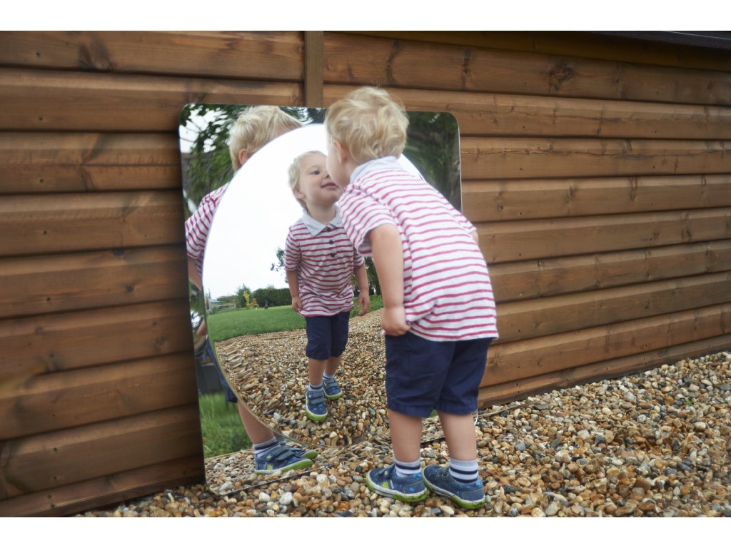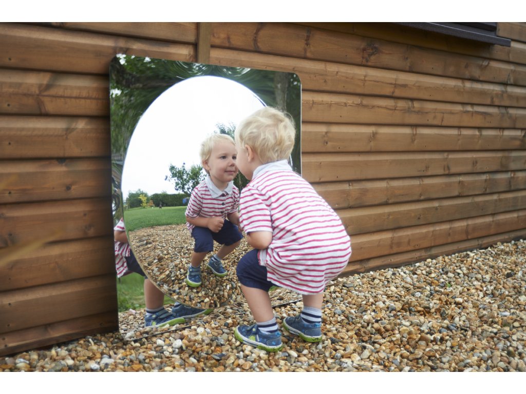 Děti jsou přirozeně fascinovány zrcadly. Díky panelu mohou pozorovat sebe, své pohyby i předměty kolem a objevovat tak svět z nových úhlů. Tato aktivita podporuje jejich zvídavost, vnímání detailů a představivost.