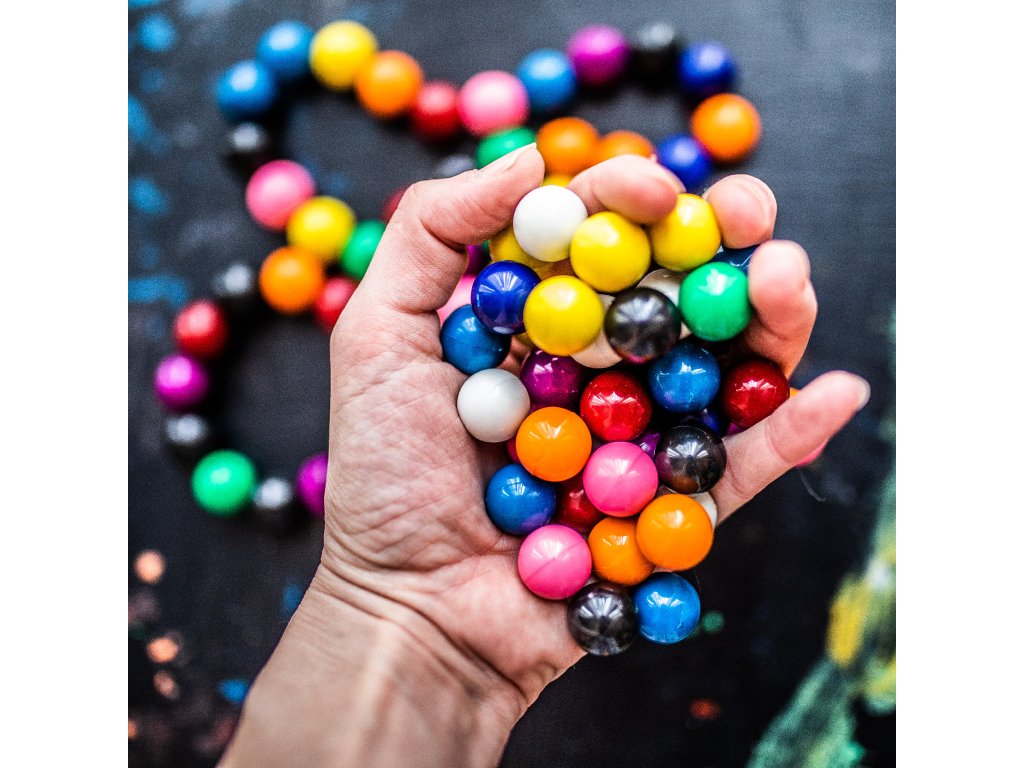 Magnetické kuličky v krásných duhových barvách zaujmou každé dítě na první pohled. Balení obsahuje 100 kusů, se kterými si děti mohou vytvářet nejrůznější obrazce, řady a konstrukce. Při hře si přirozeně osvojují barvy, počítání a učí se základnímu třídění – to vše formou zábavy.