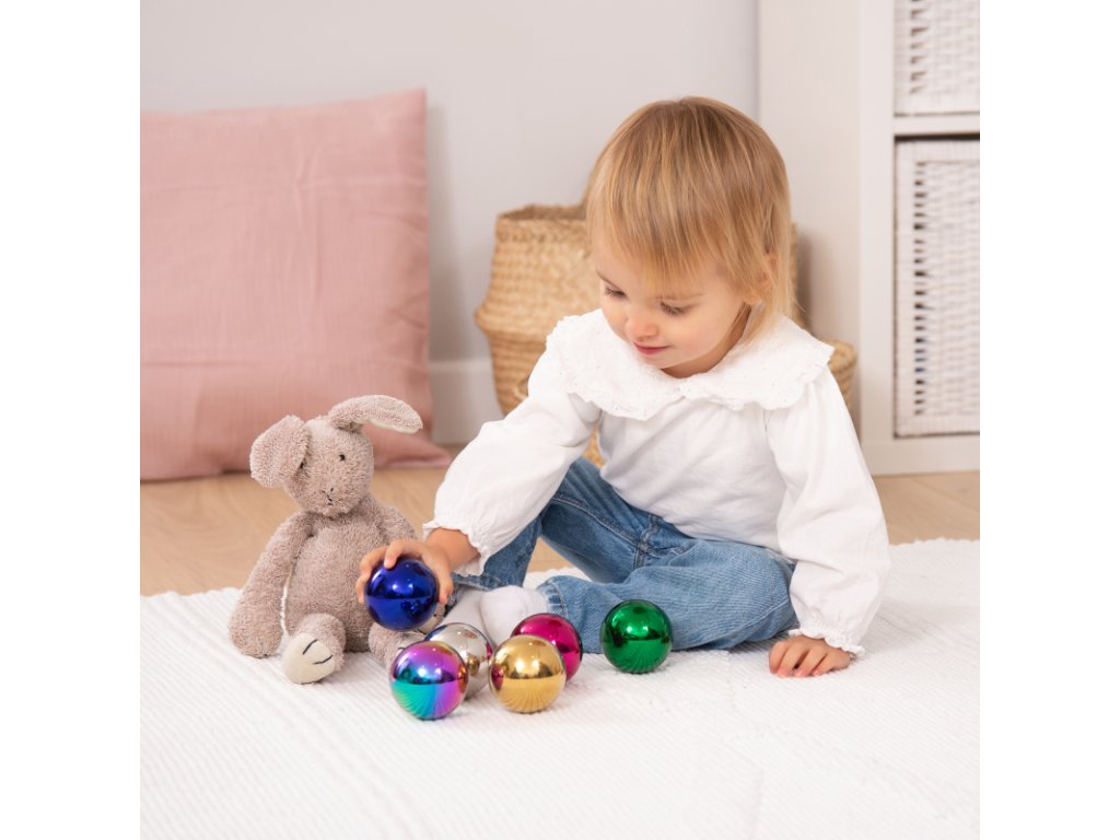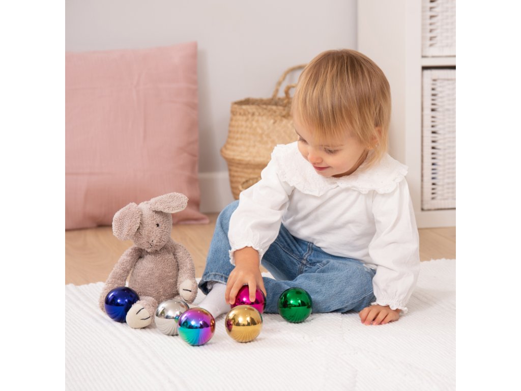 Smyslové barevné koule jsou fascinující hračkou, která rozvíjí dětskou zvídavost. Každá koule je vyrobena z odolné nerezové oceli, díky čemuž je lehká, hladká a příjemná na dotek. Koule se mohou kutálet nepředvídatelně, některé při pohybu vydávají zvuky, jiné překvapí nečekaným chováním. Děti tak objevují pohyb a zvuk novým způsobem, což podporuje jejich smyslové vnímání.