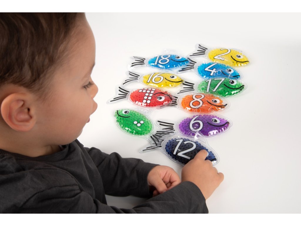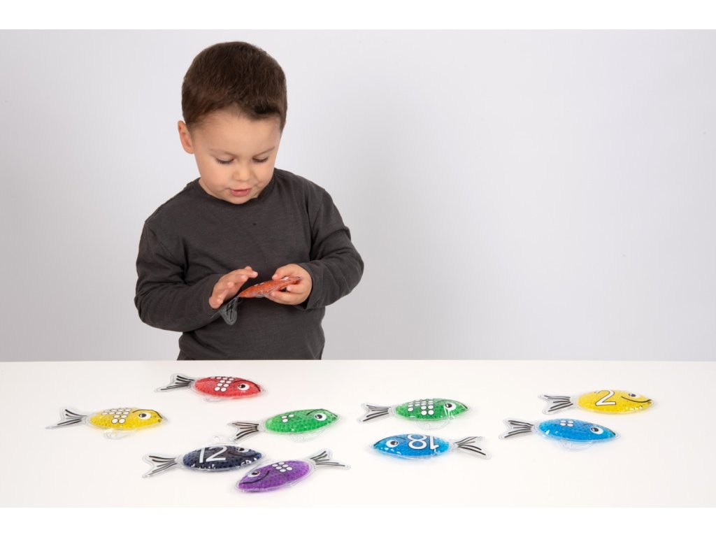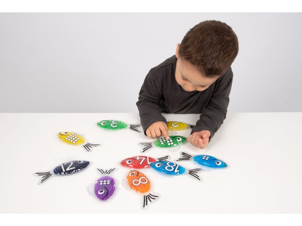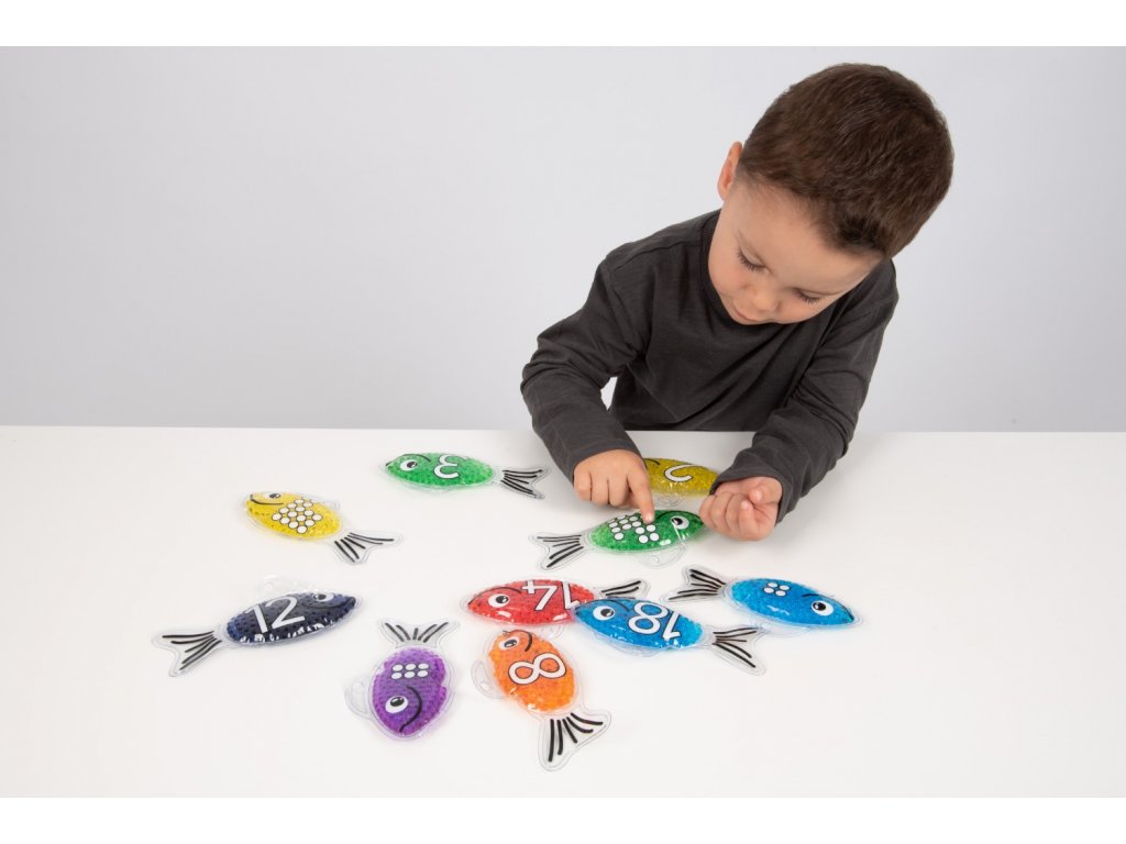 Ryby jsou vyrobeny z kvalitního materiálu a obsahují gelové korálky v 7 duhových barvách. Tyto hmatové ryby nabízejí dětem zajímavou texturu, která podněcuje smyslové zkoumání. Pohybující se kuličky v rybách mohou mít uklidňující účinek a přidávají další úroveň senzorického objevu. Ryby lze dokonce zmrazit, čímž se otevírá nový způsob hraní a zkoumání.