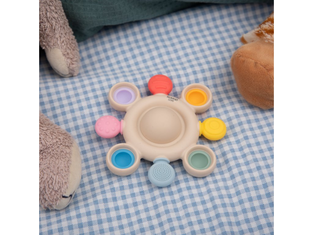 SiliSoft – Pop kousátko duhové přináší dětem zábavu, která stimuluje jejich smysly i motoriku. Každé barevné tlačítko jemně praská, čímž podporuje zvědavost a rozvíjí koordinaci ruka–oko. Duhové barvy lákají ke zkoumání a hraní, zatímco různé textury zapojují hmat a dotyk.