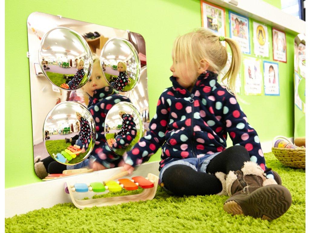 Děti jsou přirozeně přitahovány ke zrcadlům. Díky 9 konvexním zrcadlovým kopulím mohou objevovat zkreslené a zábavné obrazy sebe sama i okolního světa. Tento zážitek podporuje zvídavost, představivost a smyslový rozvoj.